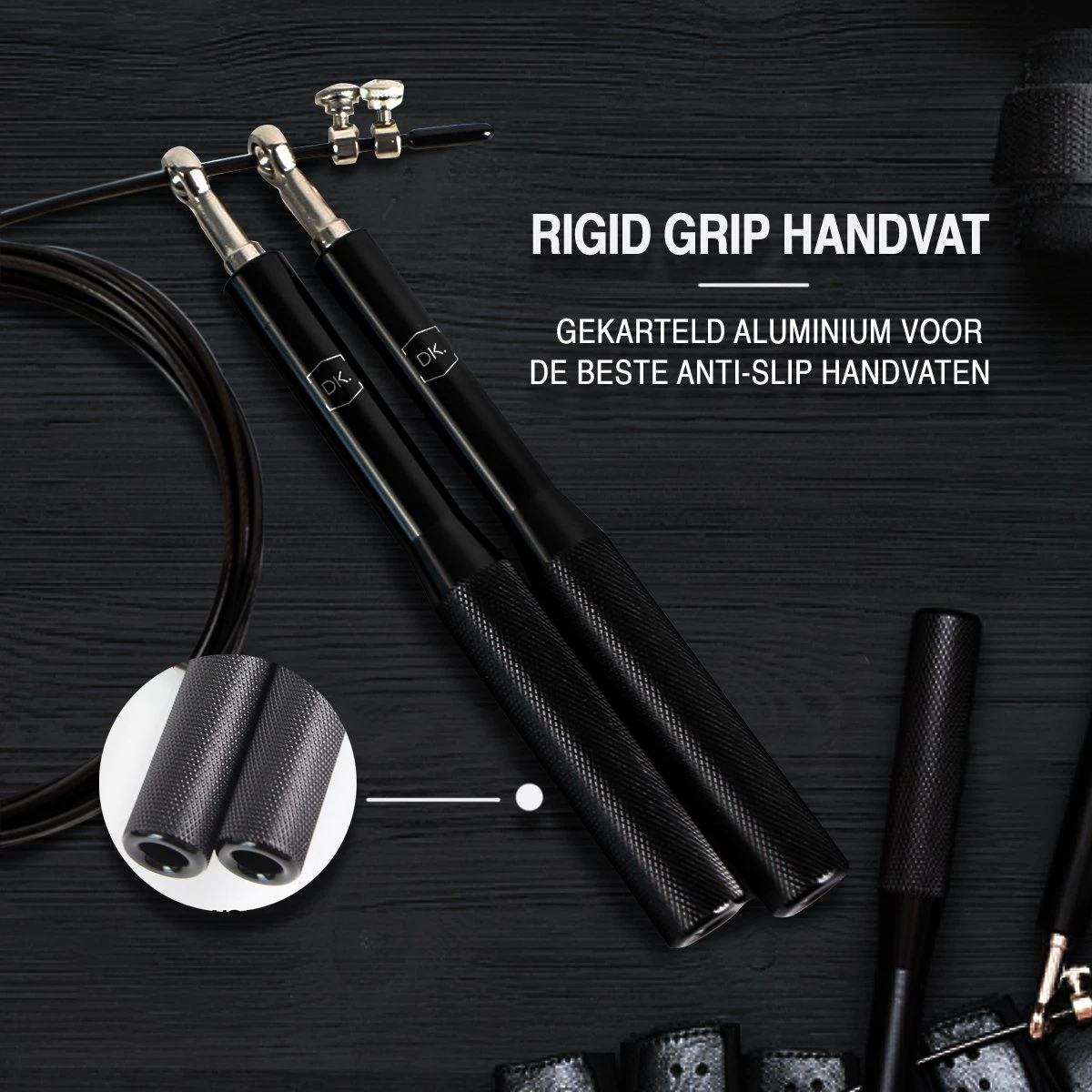 Een snel springtouw is een efficient springtouw. Het DK.® Springtouw is ontwikkeld met duurzaam lichtgewicht aluminium. Dit zorgt voor een optimale overbrenging van energie waardoor je snellere rotaties kan maken.