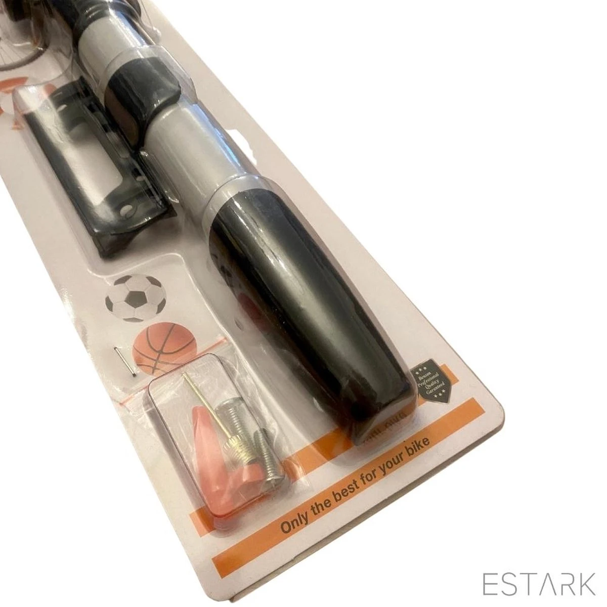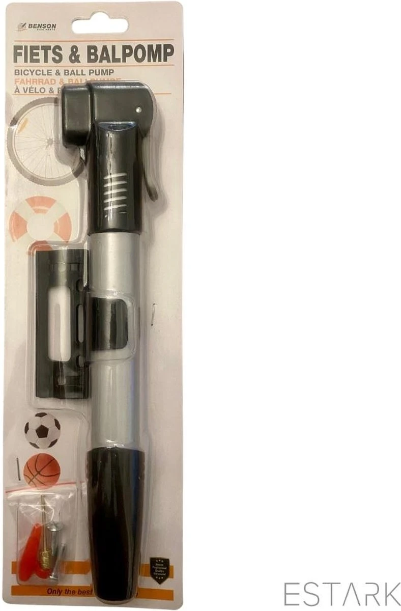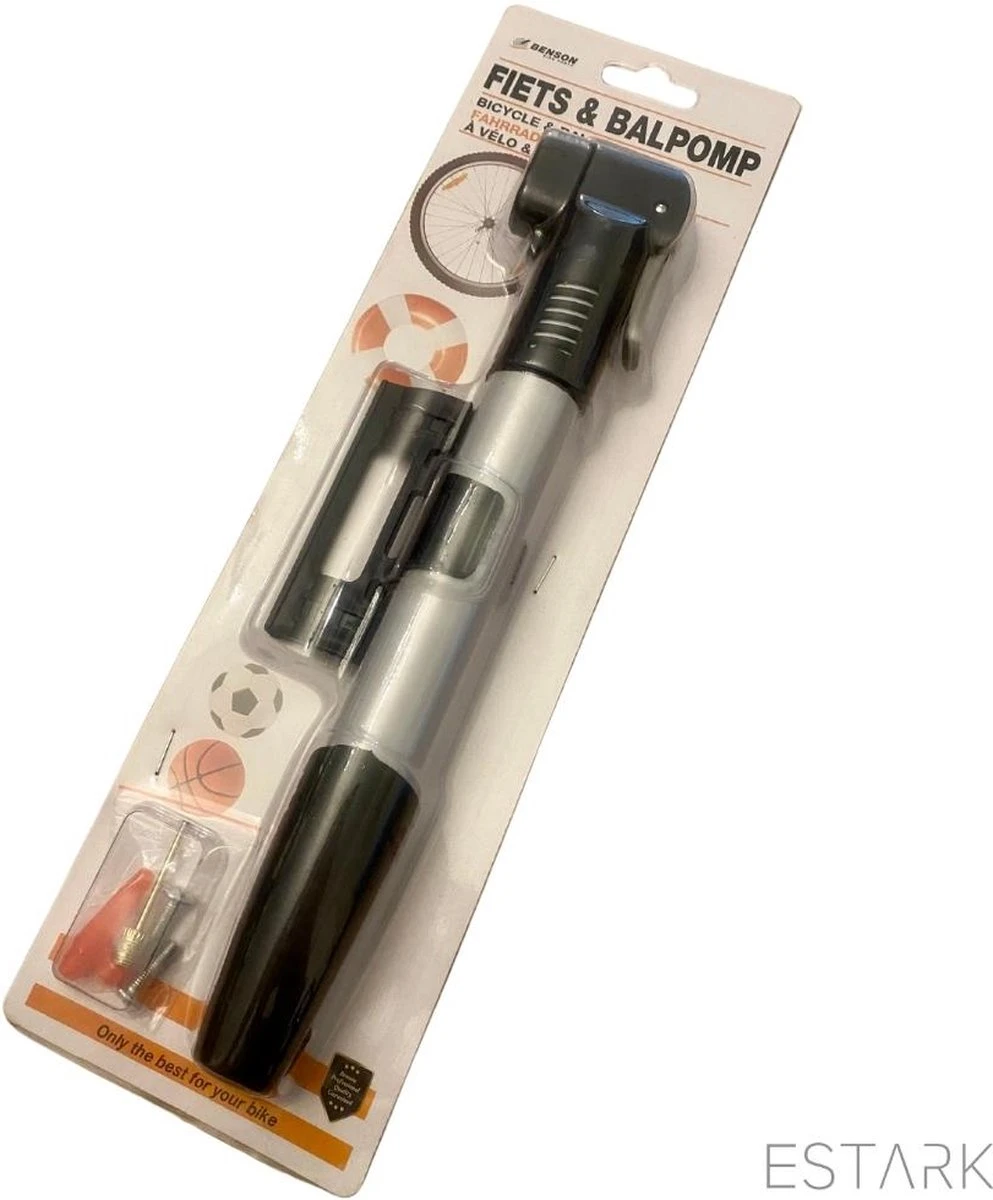 Deze professionele ballenpomp wordt geleverd met stevige naald waarmee je makkelijk diverse ballen oppompt.
