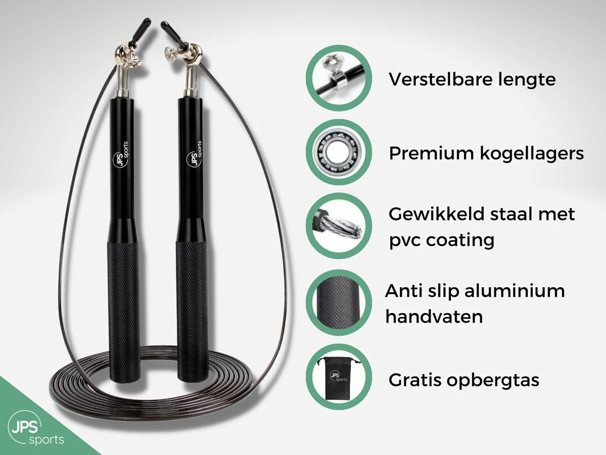 Door het kogellager systeem in de hendels kan je de JPS Sports® speed rope gebruiken om topsnelheid in jouw cardio workout te behalen! Door het lichte materiaal en de goede grip ga je met dit springtouw keer op keer met een hogere snelheid kunnen springen!