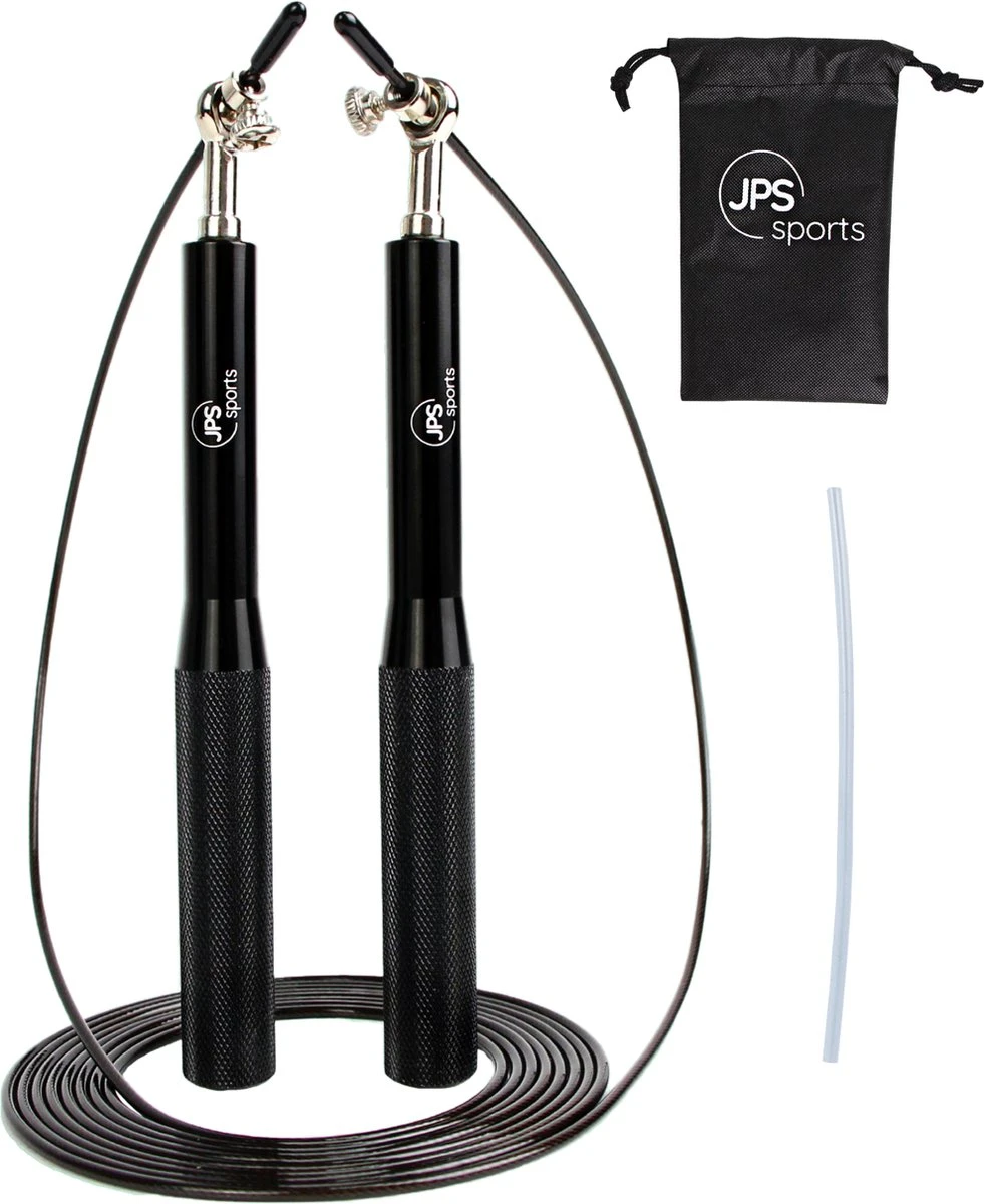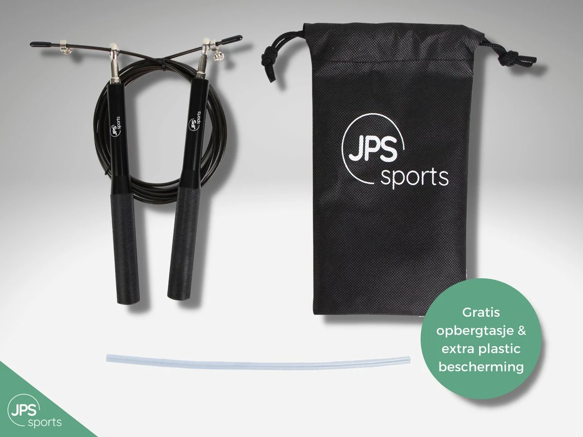 De JPS Sports® Speed Rope springtouw is gegarandeerd van de hoogste kwaliteit. De hendels van de speed rope springtouw zijn gemaakt van aluminium anti-slip grip. Hierdoor ligt hij perfect in de hand met veel grip. De kabel is gemaakt van gewikkeld staal wat voorzien is van een stevige plastic omhulzing, hierdoor is de kabel super licht en kan hij niet in de knoop raken. De kabel wordt geroteerd tijdens het springen door een kogellager systeem in de hendels, hierdoor is het springtouw geschikt om de hoogste snelheden te behalen. Ideaal voor cardio en oefeningen zoals: Crossovers en Dubble Unders. Het springtouw wordt geleverd met een handig opberg/meeneem tasje.