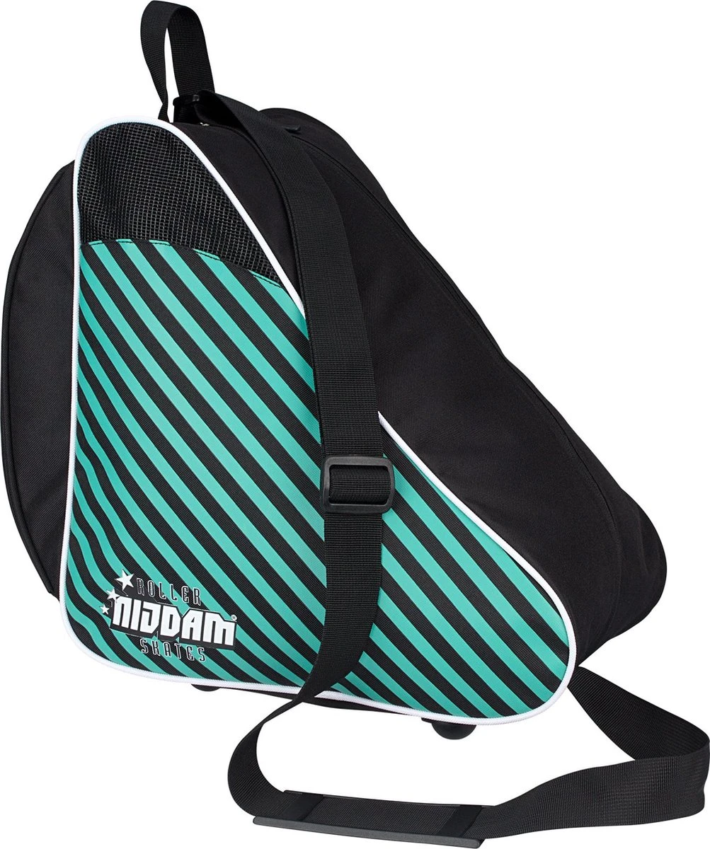 Ga je vaak naar de skatebaan of school om daar te skaten, maar ben je het zat om je rollerskates of schoenen bij de hand mee te nemen? Deze trendy skatetas van Nijdam verhelpt dat probleem en is speciaal gemaakt om je hippe, retro rollerskates te dragen. Op deze manier blijven de rollerskates goed beschermd tegen vuil en beschadiging. De skatetas heeft een klein binnen vakje om snacks en je sleutel in op te bergen.
