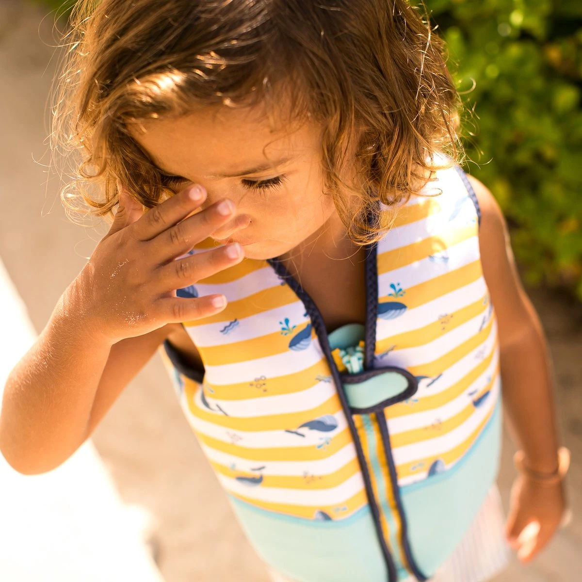 Dankzij dit nieuwe Swim Essentials zwemvest Walvissen kan jouw kindje de hele zomer veilig zwemmen en genieten van de waterpret! De blauw, wit en gele kleuren vallen goed op. Je kind heeft voldoende bewegingsvrijheid door de fijne pasvorm van het zwemvest. Het is geschikt voor kids tussen de 4 en 6 jaar oud (18-30 kg).