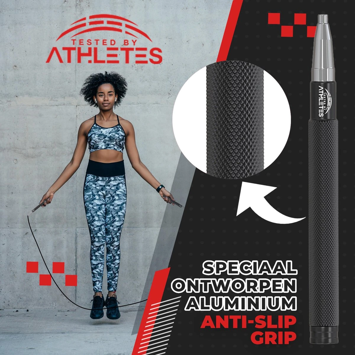 De speed rope springtouw van Tested by Athletes is gemaakt van aluminium antislip grip en een zeer dunne stalen kabel met protectieve PVC coating staaldraad, dat is ontwikkeld voor de duurzaamheid van het touw. Tested by Athletes heeft specifiek gekozen voor PVC coating, om de slijtage tegen te gaan en de levensduur van de speed rope te verlengen. Darnaast is het ultra licht waardoor het springen makkelijker gaat en je meer controle houdt!