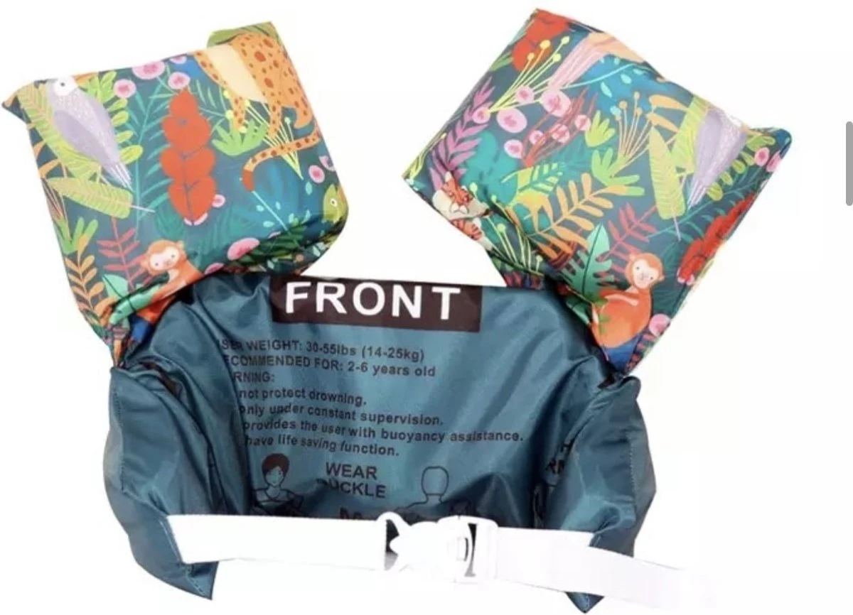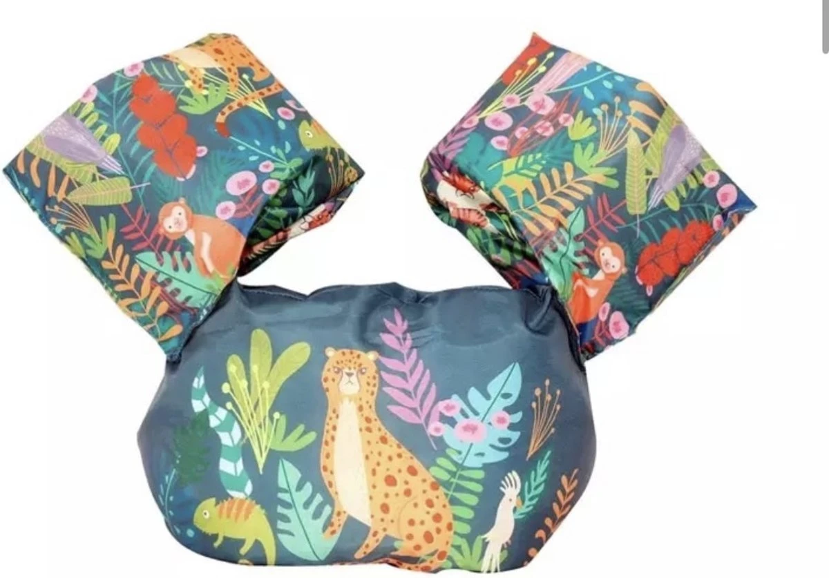 Heerlijk zwemmen in het zwembad of de zee met dit leuke kinder zwemvest Jungle // Luipaard GRRR.. Dankzij de sluiting op de rug welke is aan te snoeren zit dit zwemvest // puddle jumper altijd goed. Dankzij het midden gedeelte en de gedeelte bij de armen blijft uw kindje goed drijven en deze bied een goede ondersteuning tijdens het zwemmen!